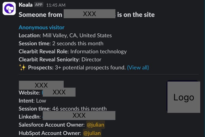 An owned account started popping up regularly in my Slack notifications. This then triggered an outbound campaign to target specific personas at that account to get a meeting.