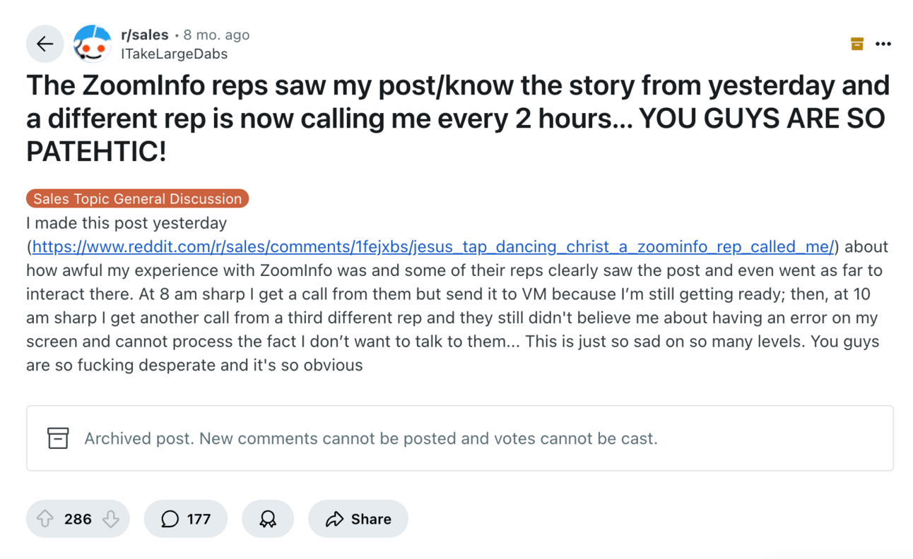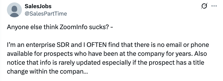 Many tweets like this calling out ZoomInfo’s data coverage & accuracy